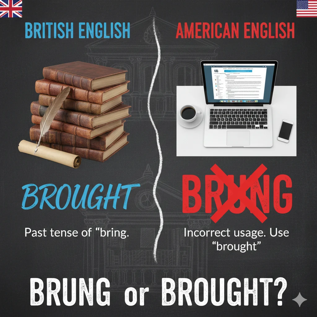 Tip: In formal writing, exams, emails, and professional contexts, always use brought. Brung should only appear in spoken dialogue or informal storytelling.